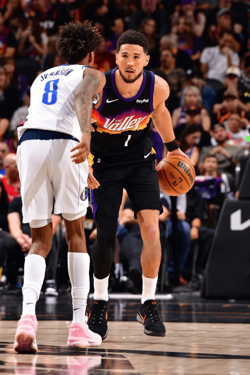 虎扑04月09日讯 今日NBA常规赛太阳112-107战胜独行侠。本场比赛,太阳队球员德文-布克出战37分钟,投篮27中13,三分球6中2,罚球9中9,得到37分5篮板9助攻。比赛中,布克上脚Nike BOOK2“Bad Boy”PE,配色灵感来自布克家乡球队—底特律活塞坏孩子军团。来源:Getty Images虎扑04月09日讯 今日NBA常规赛太阳112...